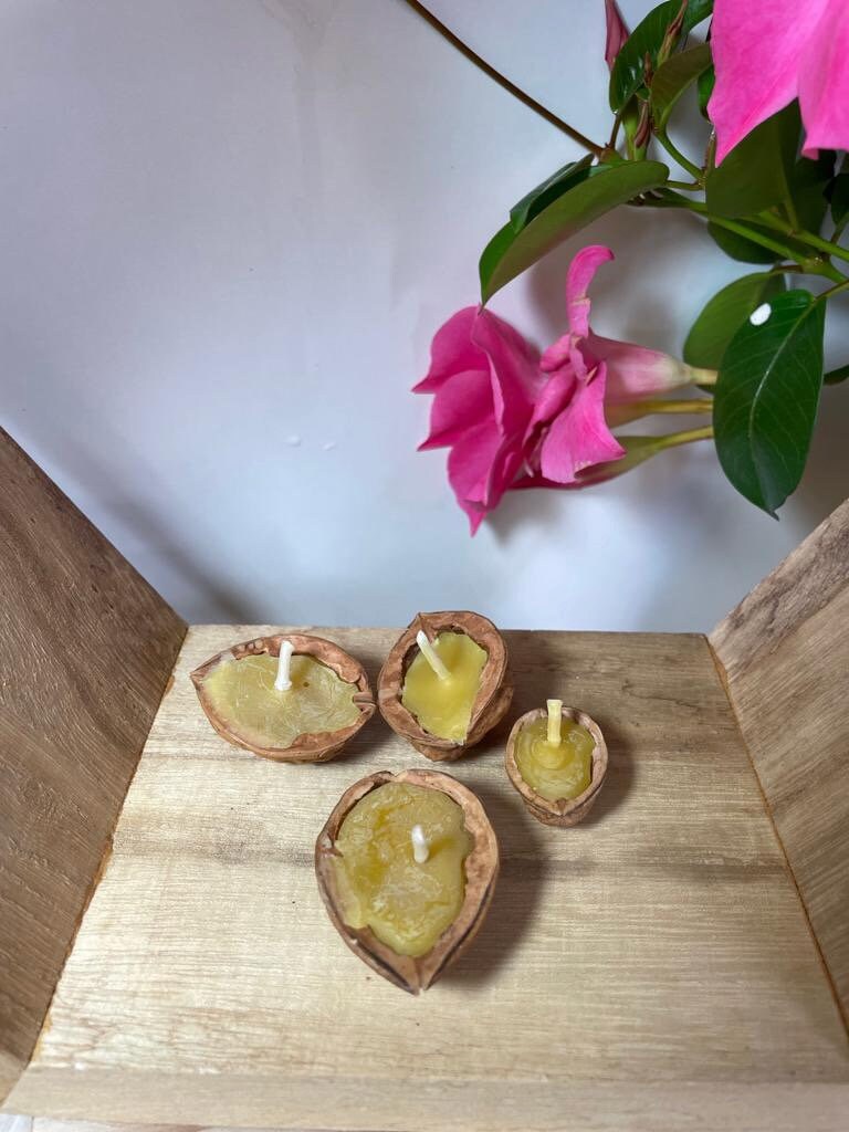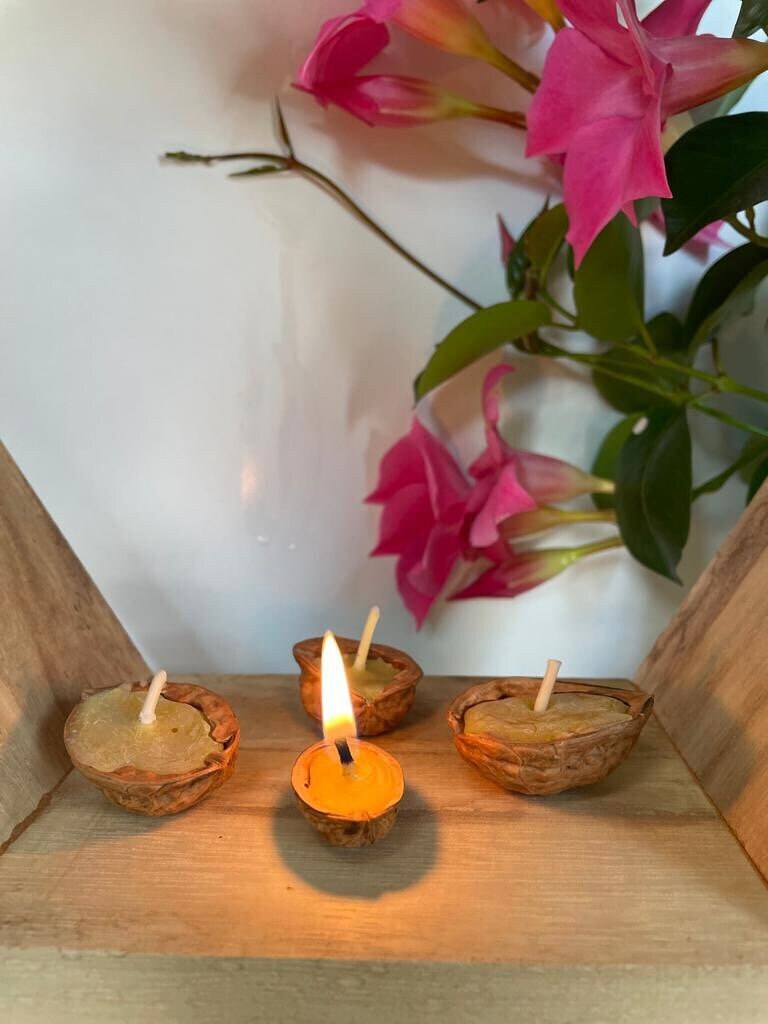Small nutshells as beeswax candles. Beautiful in a pond or in a bowl of water.