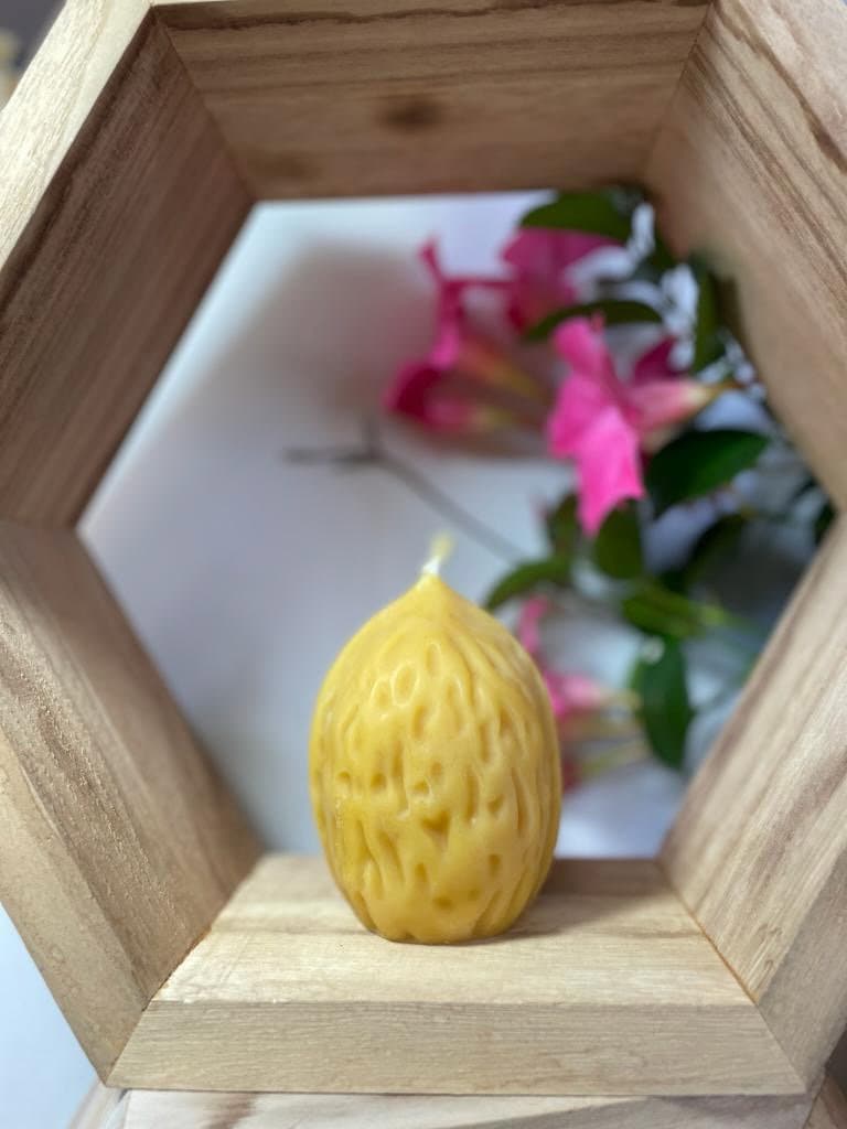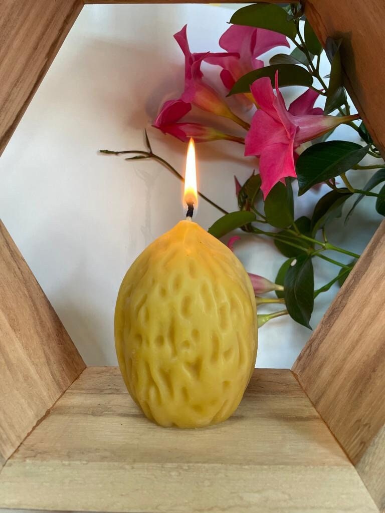 Nut candle made of beeswax. Handmade from the purest beeswax. Woidgold's beeswax candles impress with their incredibly high quality and long burning time.Weight:ca: 209g