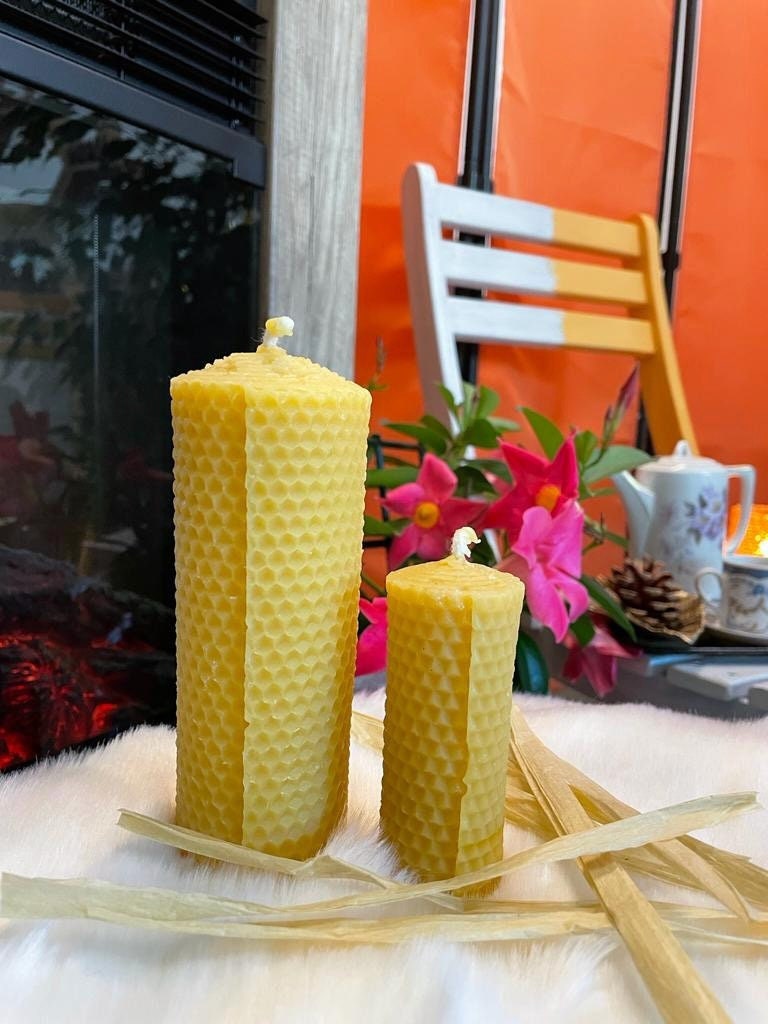 Beautiful honeycomb pattern candle which looks like it has been turned by itself. But it is not because our honeycomb sample candles are cast. As a result, they burn a lot longer than the filmed ones but look just as beautiful.